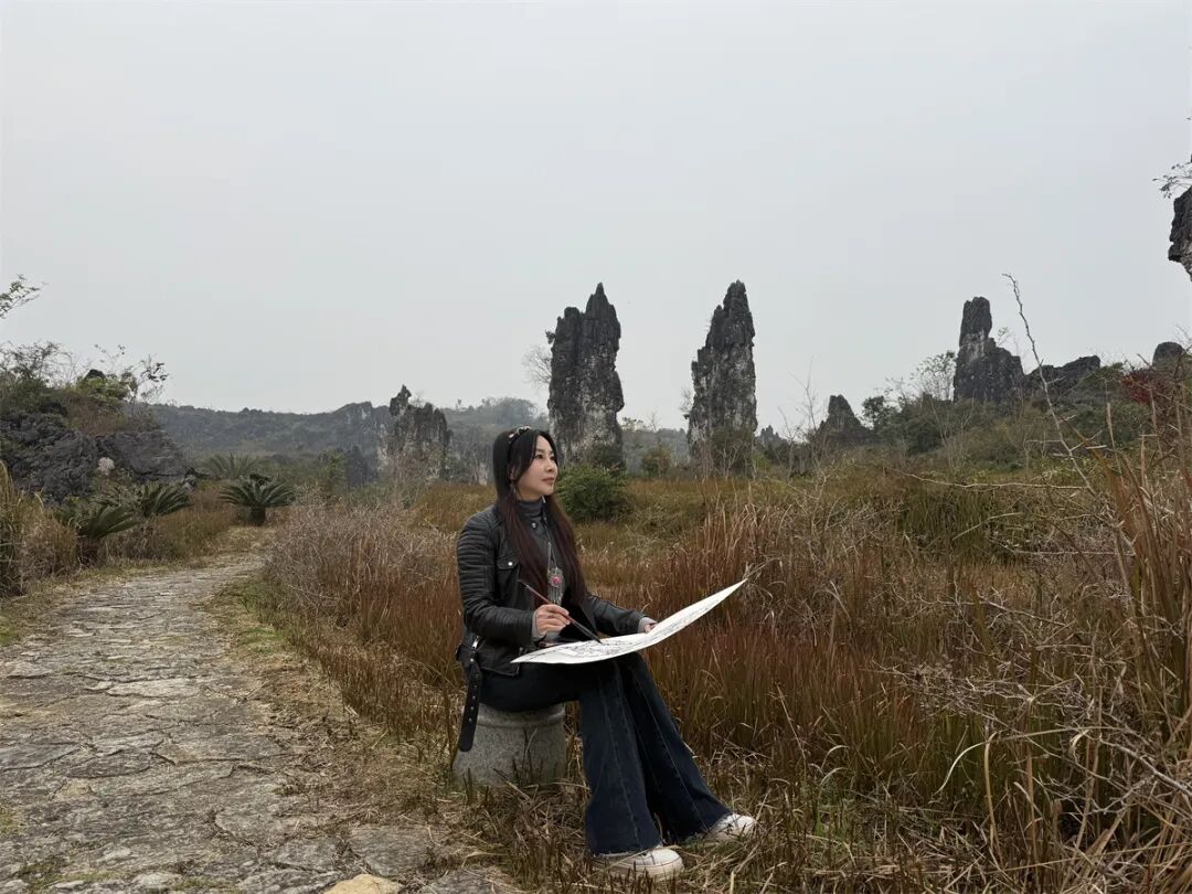 “大家到了石林里面以后,就立刻把自己的画夹铺好开始写生,他们真的非常投入,非常喜欢这里的实物、这里的人文、这里的美景,觉得每一块石头都可以入画。”北京一路黔行文化旅游发展有限公司董事长李红说。