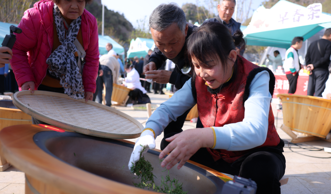 手工制茶演示成为此次活动的焦点,制茶师傅们双手在锅中翻飞起舞,理条、压扁等工序逐步推进,原本舒展的鲜叶逐渐变成扁平挺秀的干茶,空气中弥漫的茶香愈发浓郁,引得围观人群频频凑近细嗅。紧邻制茶区的评审台前,一场专业评审也正在进行。