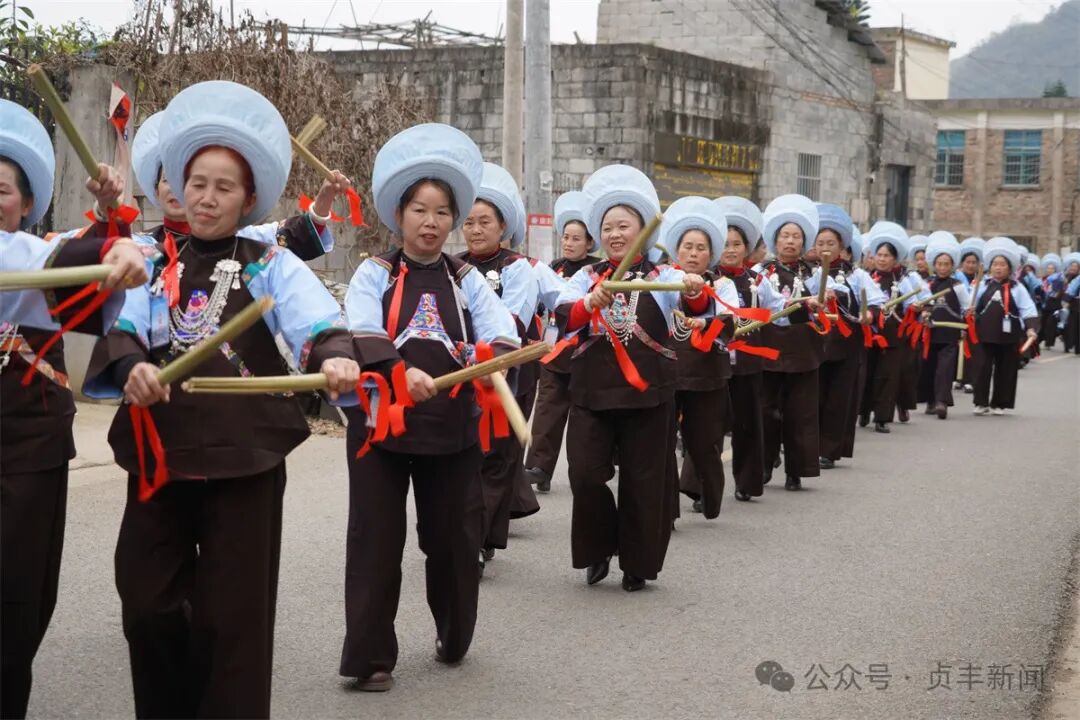 活动现场,草龙腾飞、唢呐齐鸣,布依族群众和游客组成巡游队伍,沿着村寨巡游,各族群众载歌载舞庆佳节,共绘民族团结同心圆。 “今天很高兴岩鱼邀请我们来参加‘三月三’活动,我们每年都来,他们每次的活动开展得非常好。”永丰街道七星湖社区纳马苗寨苗族同胞杨梅说。 系列主题民俗活动亮点纷呈,生动展现了布依族传统耕织文化的独特魅力,以及布依族同胞对美好生活的向往。嘉宾游客参与其中,体验多彩民俗,感受民族传统文化魅力。 “现场的气氛也是非常的热闹,刚才我们还参与了竹竿舞、打糠包活动,还跟着当地的村民一起参加了他们的巡游。” 黔南州游客柳书萍说。 “今年我们村民自发组织,来庆祝‘三月三’,还邀请了邻近兄弟村寨的同胞一起参加,一起过节,展示我们布依族的耕织文化,将非物质文化遗产展现出来,这是今年活动的和往年不同的亮点。”永丰街道岩鱼村村民黄生辉说。 此次活动以“耕织布依 稻香岩鱼”为主题,通过非遗展示、民俗体验,深挖民族文化内涵,促进各民族交往交流交融,进一步铸牢中华民族共同体意识。 “岩鱼村有800年历史,国家级非遗--布依族勒尤在此传承,‘三月三’‘六月六’传统习俗延续至今,文化底蕴深厚。随着经济发展,对我们的传统节日更加重视,今年通过群众自愿,邀请了邻寨同胞共聚岩鱼,共度佳节。”永丰街道岩鱼村党总支书记、村委会主任罗会说。