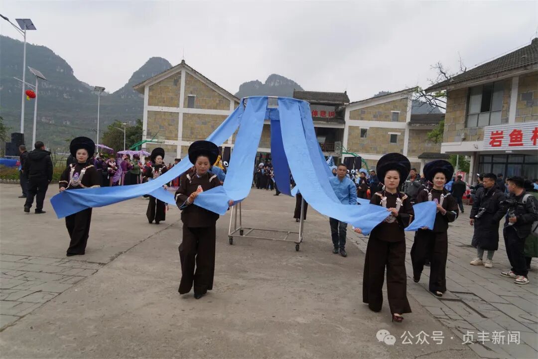 热情好客的布依族群众身着节日盛装,以隆重的迎宾仪式喜迎八方来客,展现了布依族热情好客的传统和深厚的文化底蕴。 “今天来到岩鱼,感受当地的特色文化,我觉得还是挺有意思的,他们的民族服装都特别好看,还有非物质文化遗产都特别好。”游客杨秀清说。