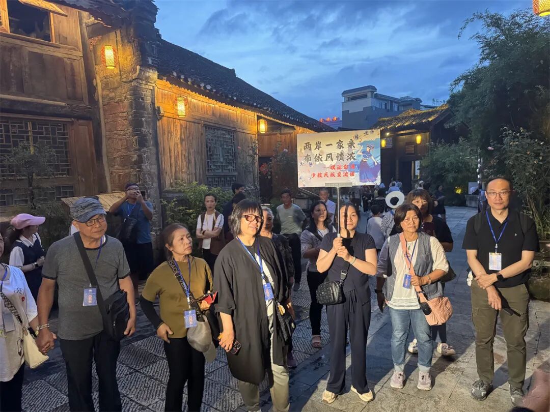 婉转悠扬的布依族山歌,饱含深情厚谊,感染了交流团成员,他们以台湾民歌《阿里山的姑娘》作为回应,两岸少数民族歌舞传情,民族文化互相交融,现场交织成一片欢乐的海洋。