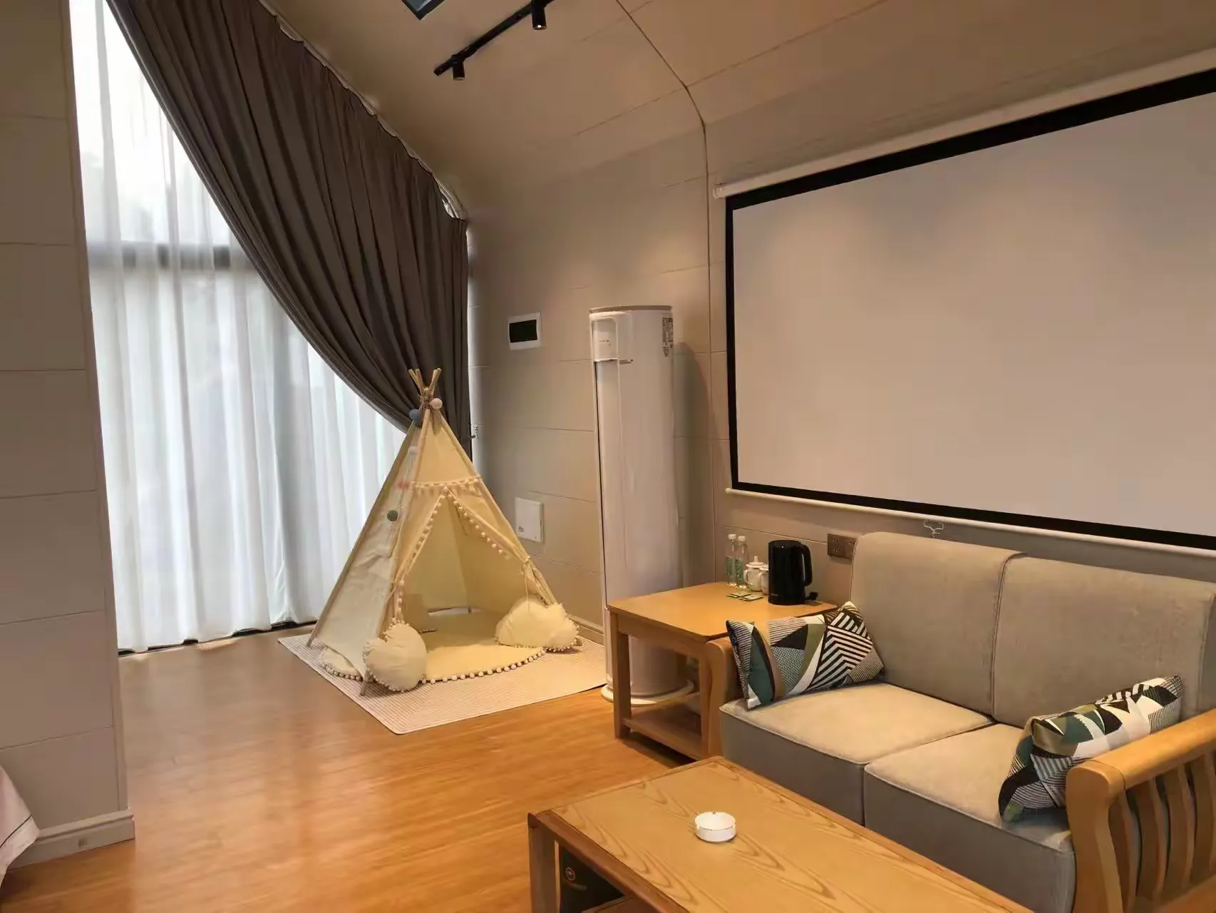该户型共11间,设计简约大方,内饰精美。全景落地玻璃,视野宽阔,美景一览无遗。房内设置超大投影仪,观影效果极佳,极具轻奢度假氛围。