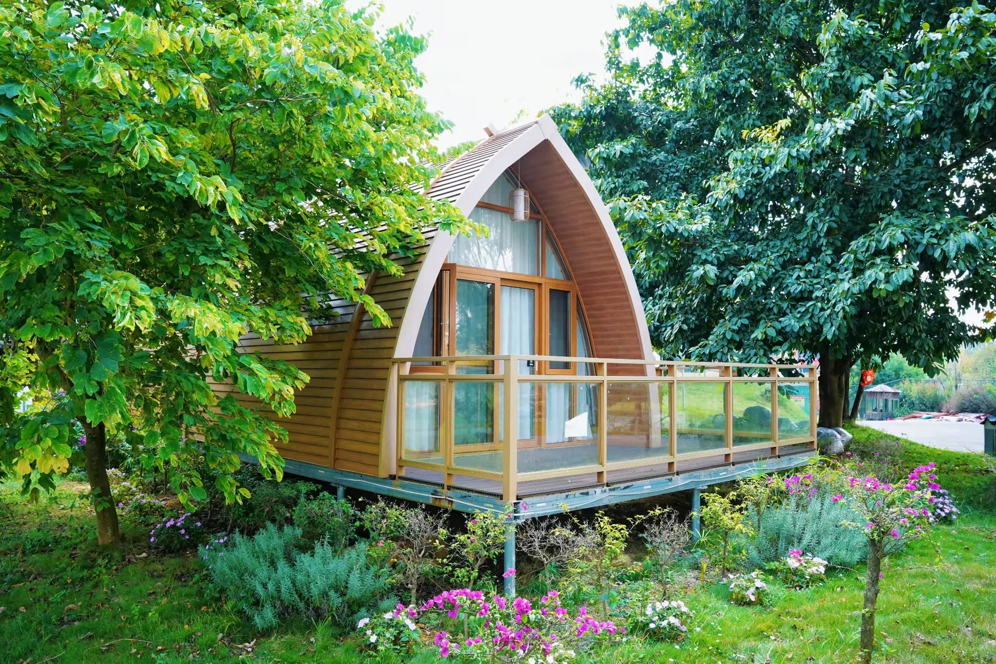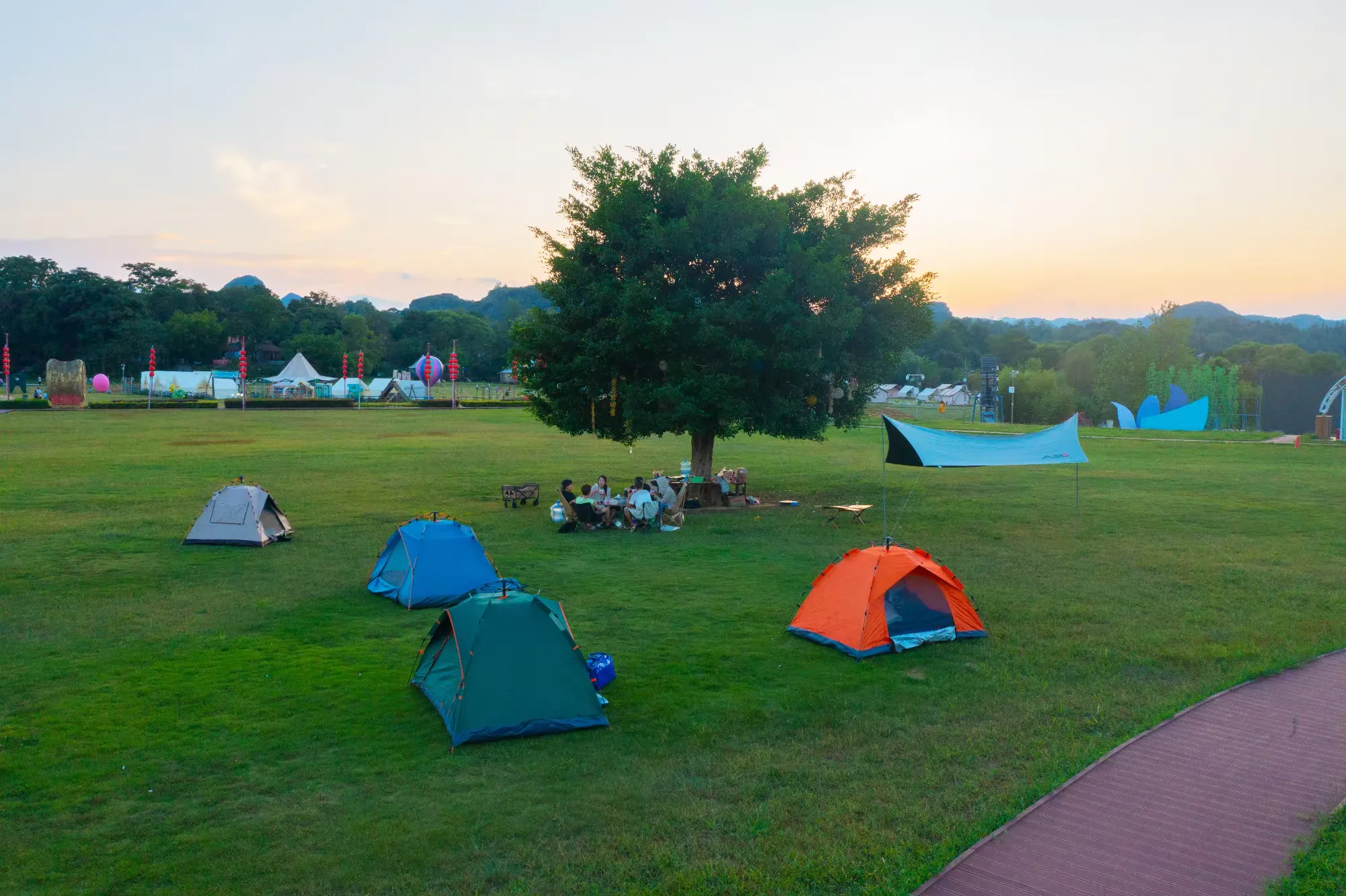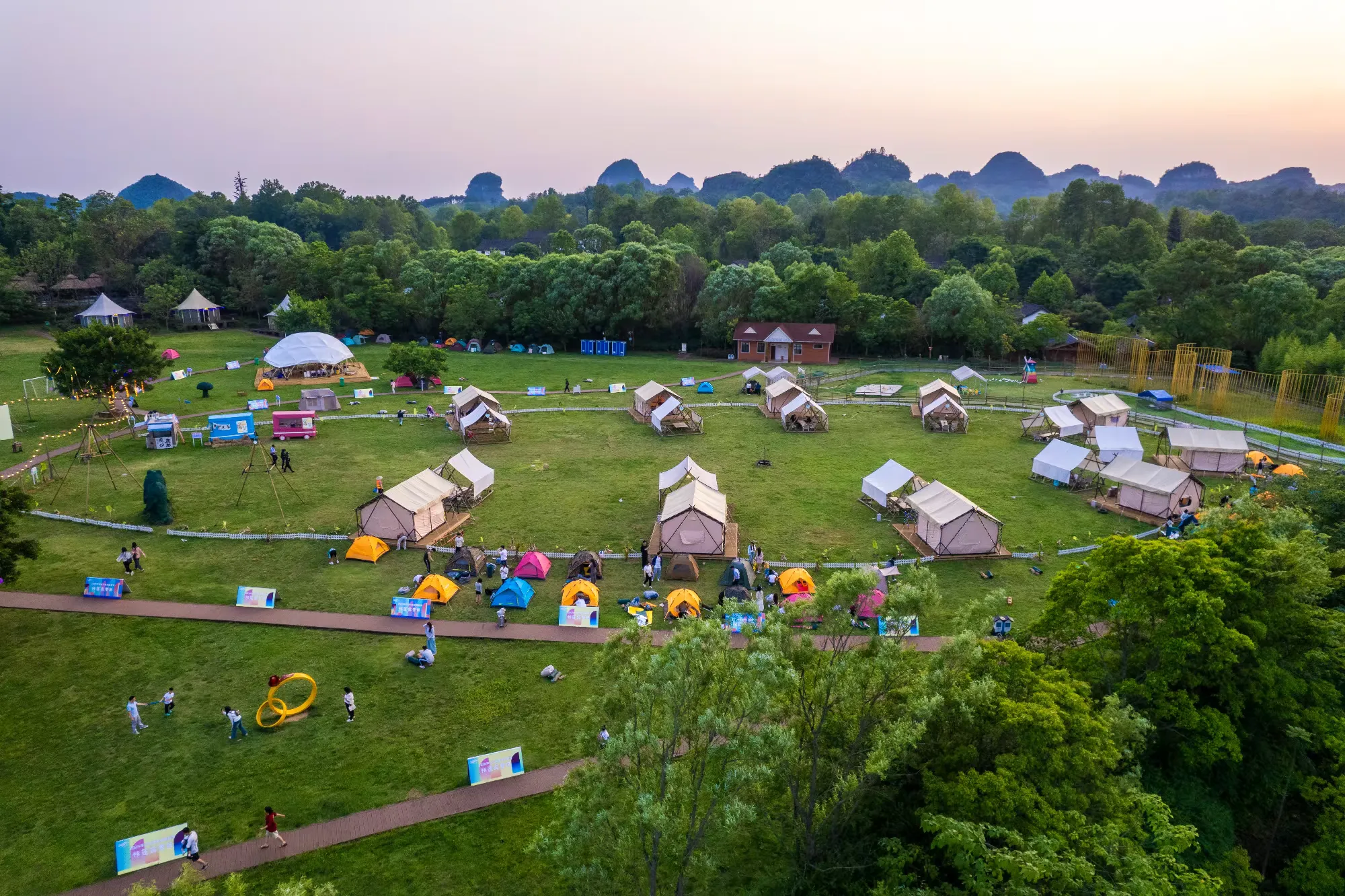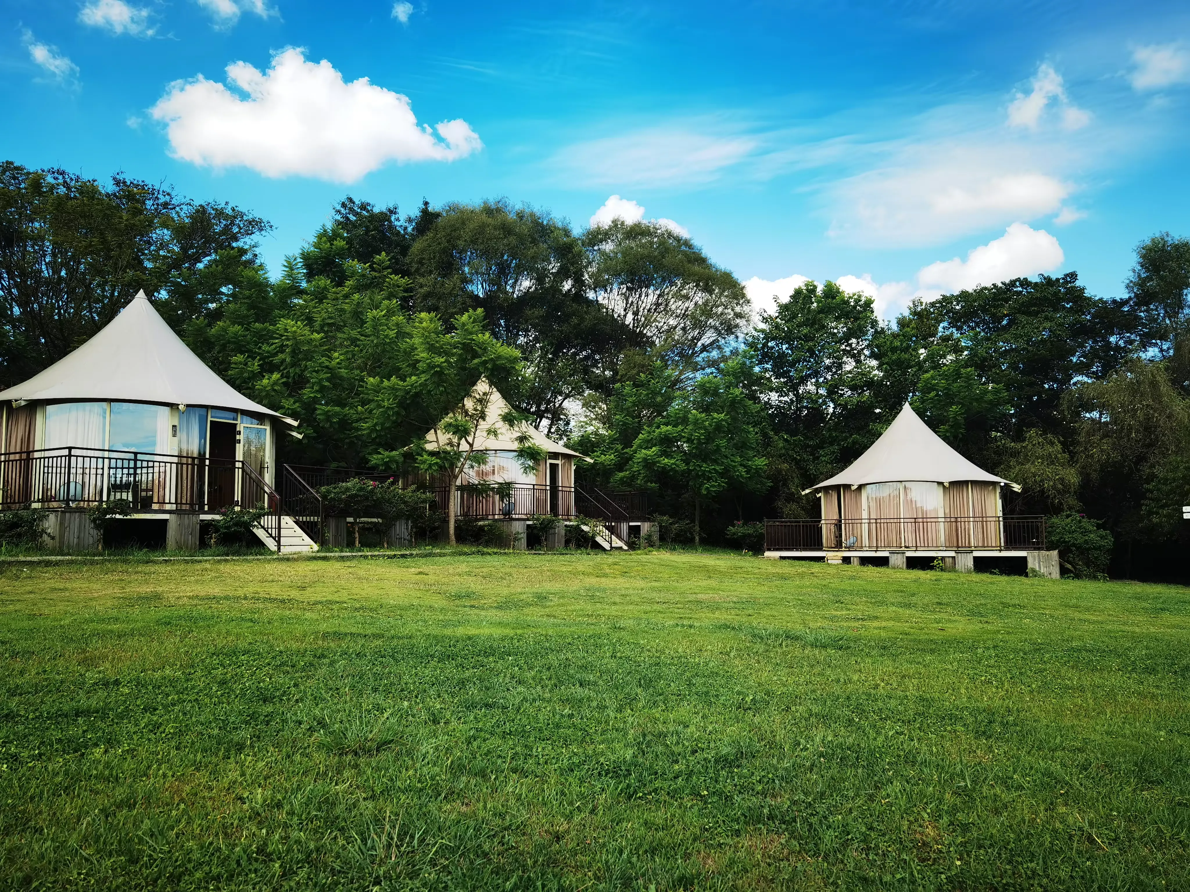 帐篷酒店位于草坪露营区内,形似蒙古包,让游客不搭帐篷也能体验到帐篷露营的感觉。