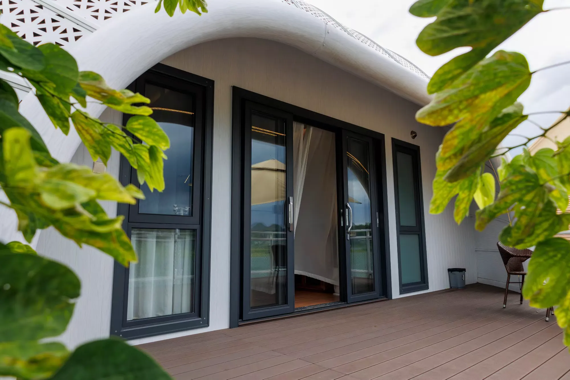 雅居群落景观亲子房环境优美,抬头便可仰望星河,房内配置的精致露营帐篷,趣味十足,让旅客尽情享受亲密的亲子时光。