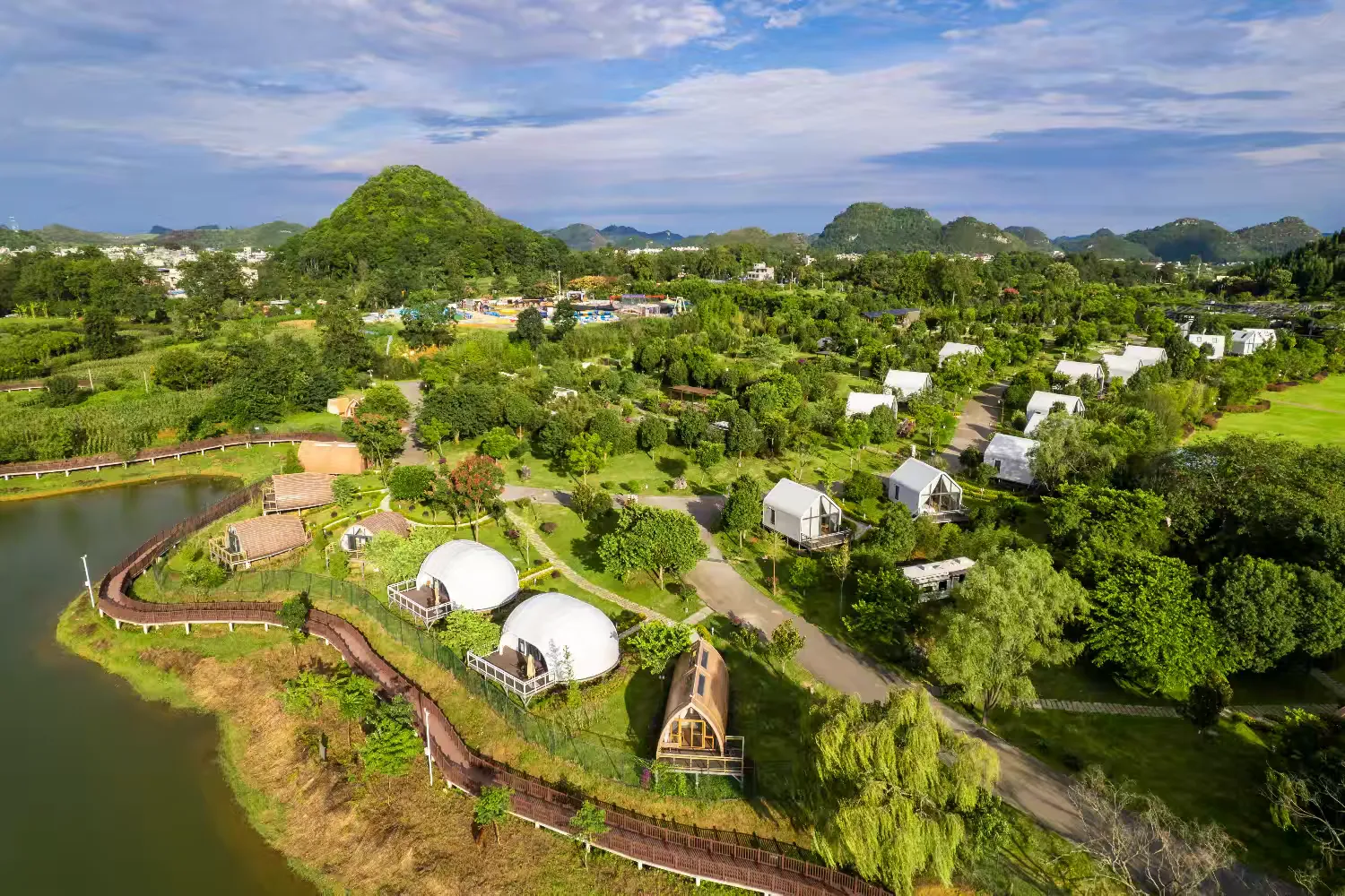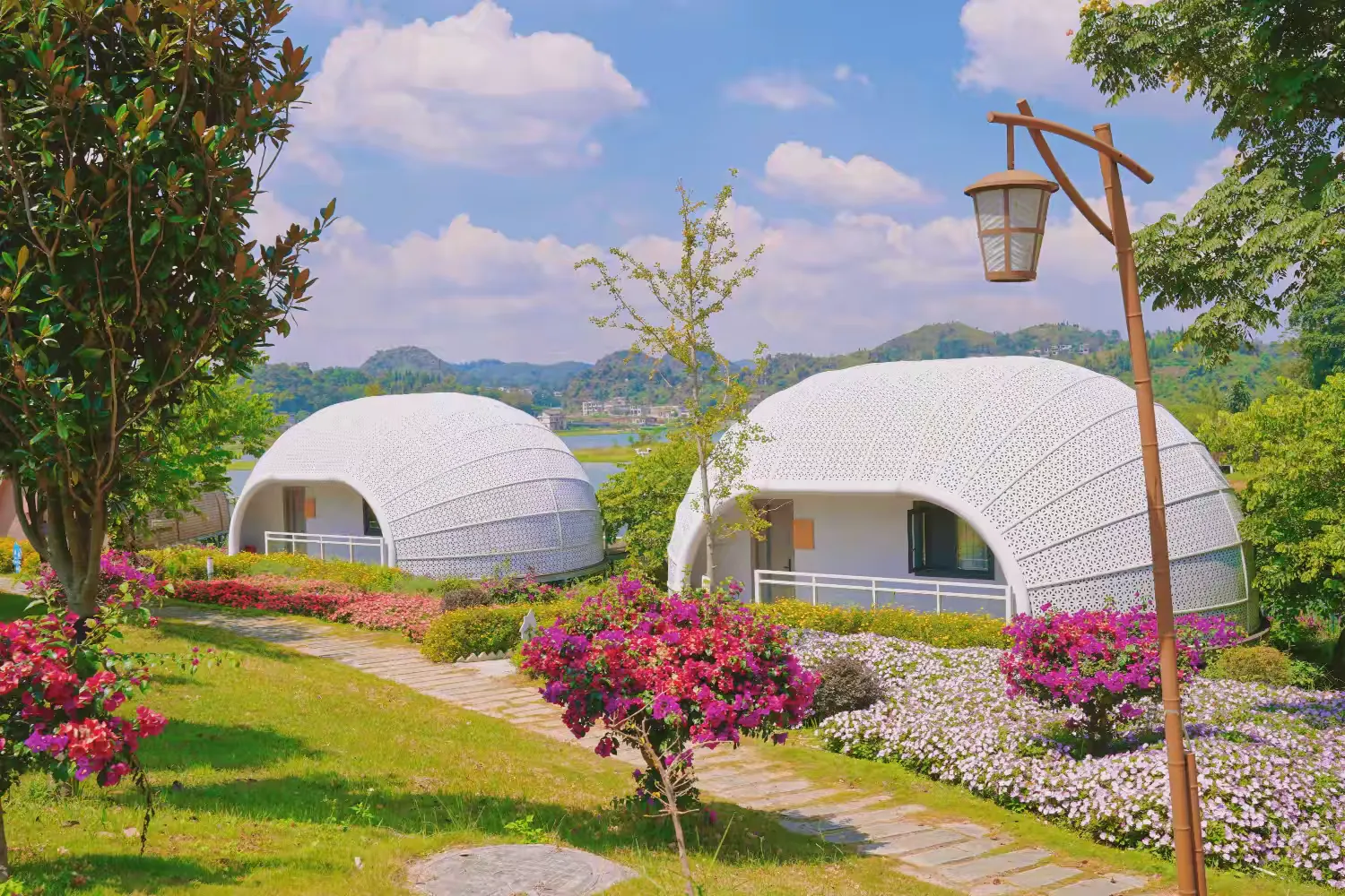 这里打造了国内西南部最具有影响力的星空酒店群,在这片露营区已经入驻20辆国内外豪华房车,每辆房车均有独立的院落,绿树拥翠、竹影婆娑。24栋星空轻奢酒店内饰精美,设施俱全,让游客倍感舒适温馨,纵享轻奢体验。