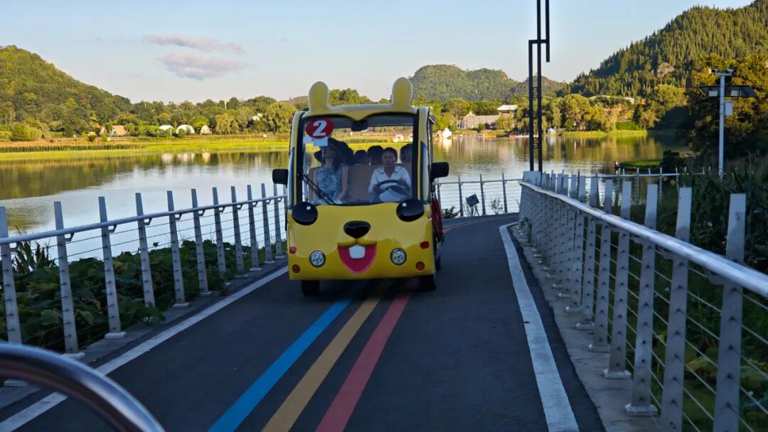 采风团一行走进三岔河景区,围炉煮茶,享受一段惬意的午后慢时光。随后,采风团还体验了卡丁车项目,乘坐观光车穿梭于湖畔车道,湖光山色交相辉映,令人沉醉,纷纷开启“湖边打卡”模式,在桥边与阳光和湖景留下美好瞬间。
