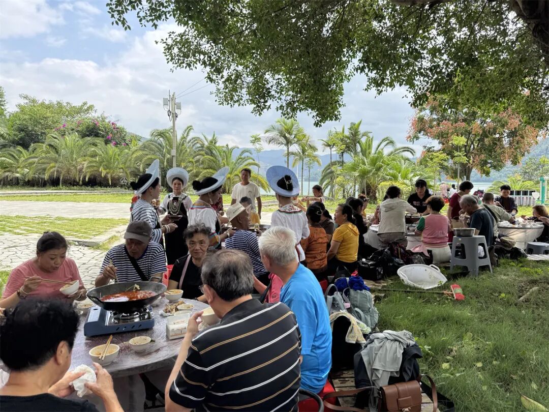 游客在畅游峡谷之余,还可品尝地道酸汤火锅鱼宴,酸辣鲜香的风味征服了大家的味蕾。当地能歌善舞的布依族群众也热情参与,与游客亲切互动,营造出浓郁的民族风情氛围。