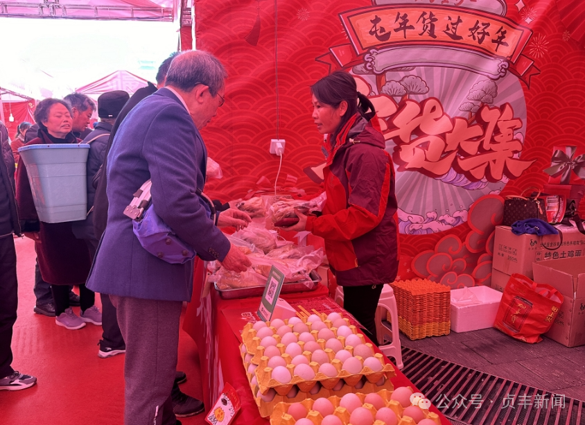 “要过年了,来买点年货,买点腊肉、香肠、血豆腐、粑粑等,口感很好,很好吃,价格也不贵。”贞丰市民杨厚芬说。 “感谢政府帮我们搭建这个平台,让我们来这里卖年货,香肠、腊肉等都卖得很好,一个小时卖了300多斤。”贞丰县理翠布依手工香肠腊肉加工厂负责人余礼会说。