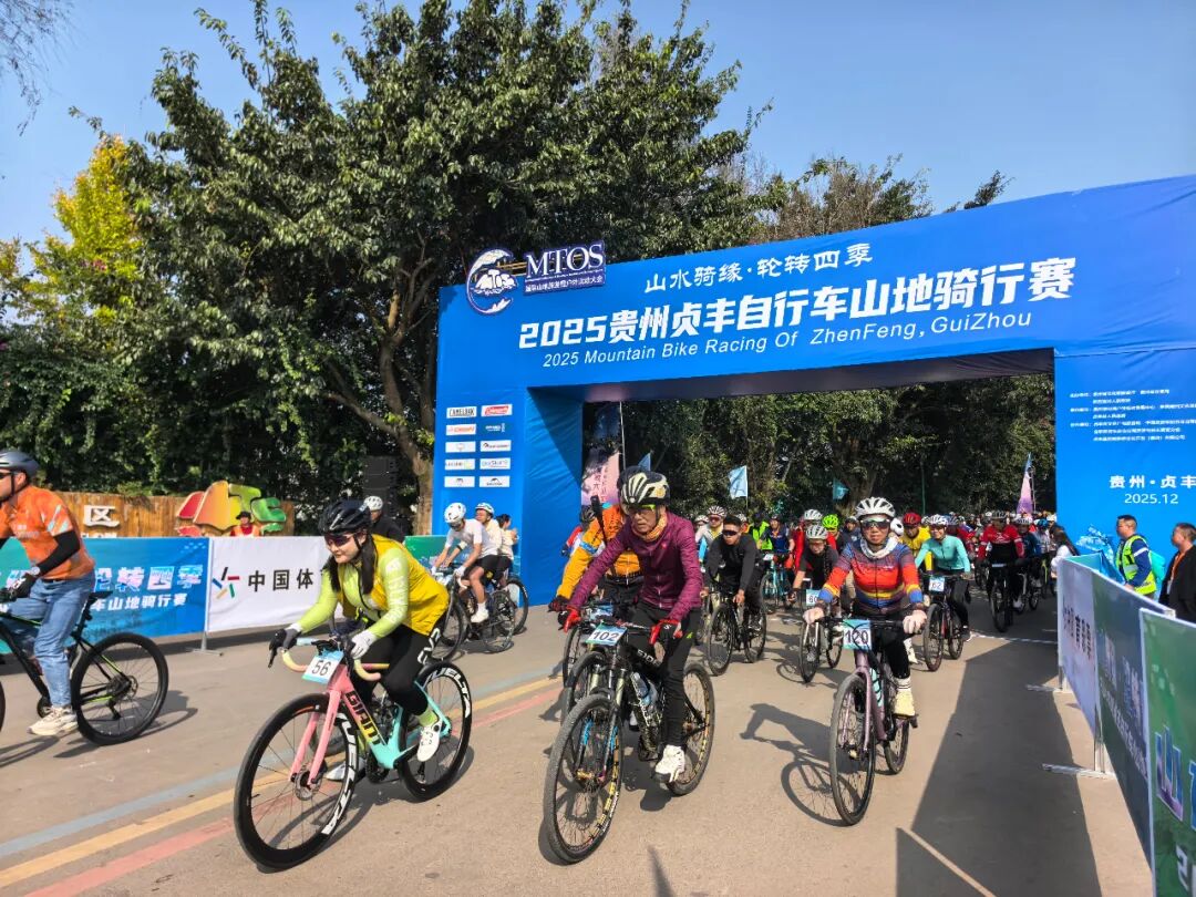 “加油!”“享受赛道!”……12月1日,伴随着此起彼伏的助威与呐喊,山水骑缘·轮转四季——2025贵州贞丰自行车山地骑行赛在贞丰三岔河景区拉开帷幕,吸引了来自州内外的200余名骑行选手同场竞技。